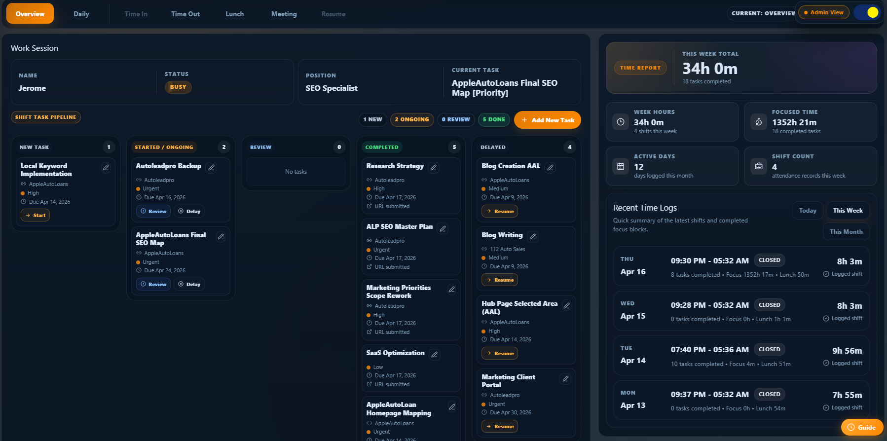 Jerome handles the strategy, technical SEO, landing page builds, dashboard planning, and workflow implementation directly. No bloated handoff, just practical execution around dealer lead flow.